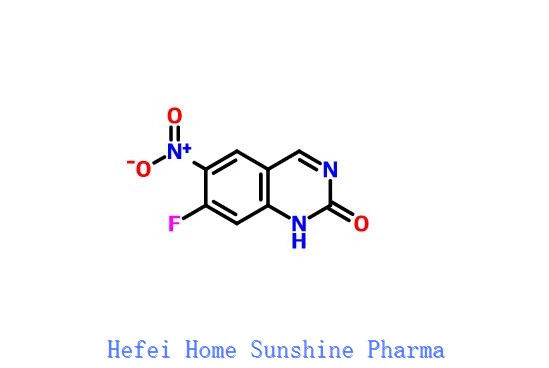 7-Fluoro-6-nitroquinazoline-4(3H) -one, est un intermédiaire dans la préparation d' inhibiteurs de kinase, tels que les inhibiteurs du site ATP de l' activité de la tyrosine kinase du récepteur du facteur de croissance épidermique.