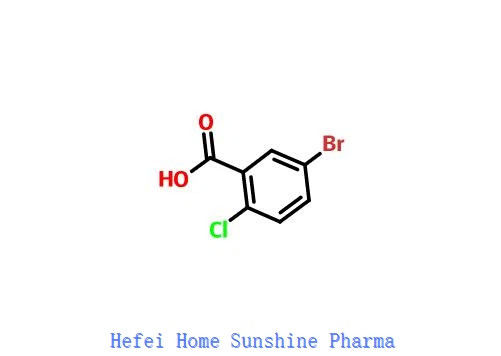 L' acide 5-bromo-2-chlorobenzoïque est utilisé comme matière première dans la synthèse de dapagliflozine,un inhibiteur sélectif du cotransporteur sodium-glucose-2 qui réduit la réabsorption rénale du glucose et est utilisé pour traiter les patients atteints de diabète de type 2.