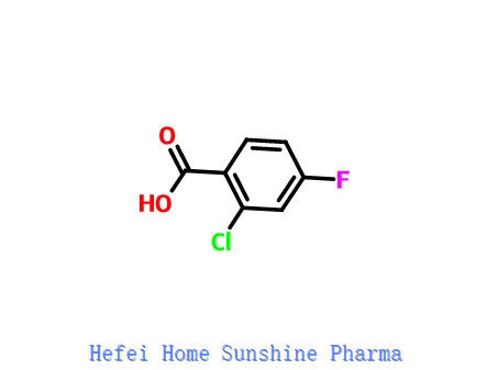 L'acide 2-chloro-4-fluorobenzoïque est un intermédiaire synthétique utile qui peut être utilisé pour préparer des benzamides aryl aminopyrazole en tant qu'agonistes sélectifs des récepteurs glucocorticoïdes non stéroïdiens par voie orale.Il peut également être utilisé pour synthétiser (4,4-difluor-1,2,3Les dérivés de l'acétamide 4-tétrahydro-5H-1-benzazépine-5-ylidène sont utilisés comme agonistes des récepteurs de l'arginine vasopressine V2.