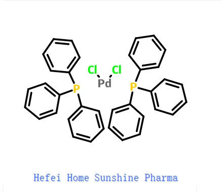 Le chlorure de palladium bis ((triphénylphosphine) est un composé de coordination du palladium contenant deux triphénylphosphine et deux ligands de chlorure.C'est un solide jaune qui est soluble dans certains solvants organiques.Il est utilisé pour les réactions d'accouplement catalysées par le palladium, par exemple la réaction Sonogashira Hagihara.De nombreux complexes analogues sont connus avec différents ligands de phosphine.